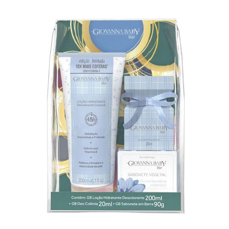 Kit Giovanna Baby Blue Loção Hidratante Corporal 200ml + Deo Colônia Desodorante 20ml + Sabonete Em Barra vegetal Óleo De Macadâmia E Vitamina E 90g - Giovanna Baby
