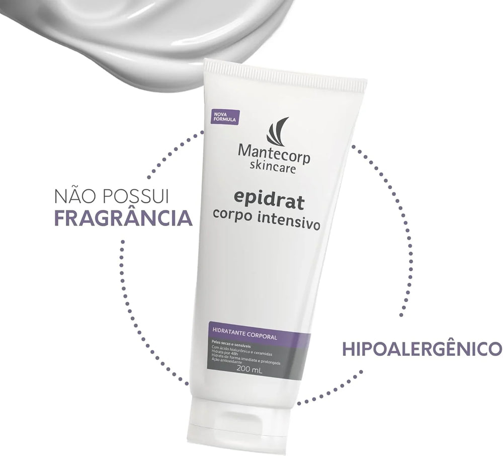 O Hidratante Corporal Epidrat Intensivo da Mantecorp é o cuidado ideal para pele seca, oferecendo hidratação prolongada, nutrição profunda e suavidade imediata. Sua fórmula especialmente desenvolvida contém ingredientes umectantes, auxilia no fortalecimento da barreira cutânea, reduz a perda de água e mantém a pele hidratada por 24 horas. Com absorção rápida, textura cremosa e sem aspecto pegajoso, é ideal para a rotina diária de cuidados corporais. A sensação de conforto fica evidente desde a primeira aplicação, deixando a pele visivelmente macia, luminosa e protegida.