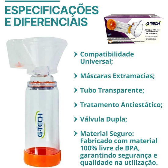 O Espaçador Clear Adulto e Infantil G-Tech é a solução ideal para aumentar a eficácia dos medicamentos para asma e bronquite, oferecendo praticidade e segurança. Compatível com todos os dispensadores de medicamento aerossol, este produto foi desenvolvido para garantir a correta administração dos medicamentos inalatórios, tanto para adultos quanto para crianças.