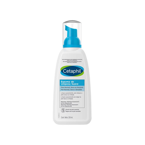 A Espuma de Limpeza Facial Suave Cetaphil é indicada para peles sensíveis e delicadas. Promove limpeza eficaz sem ressecar, removendo impurezas, oleosidade e resíduos de maquiagem, mantendo o equilíbrio natural da pele.