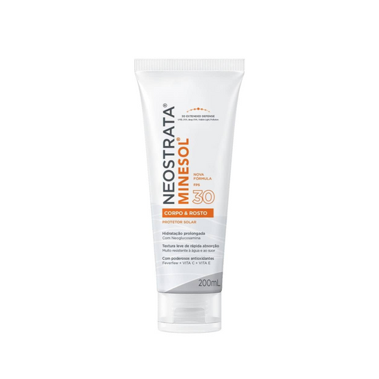 O Neostrata Minesol Corpo & Rosto FPS30 é um protetor solar desenvolvido para oferecer proteção eficaz contra raios UVA, UVB, luz visível e poluição. Com textura leve de rápida absorção, ele proporciona hidratação prolongada e não deixa a pele pegajosa, sendo ideal para uso diário no corpo e no rosto.