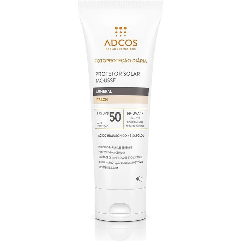 O Protetor Solar Mousse FPS 50 Tonal Nude da Adcos é um filtro solar facial com cor que combina alta proteção solar com benefícios cosméticos em uma textura mousse ultraleve. Formulado com 100% filtros minerais (filtros inorgânicos), oferece proteção eficaz contra raios UVA e UVB, sendo ideal para peles oleosas e sensíveis.