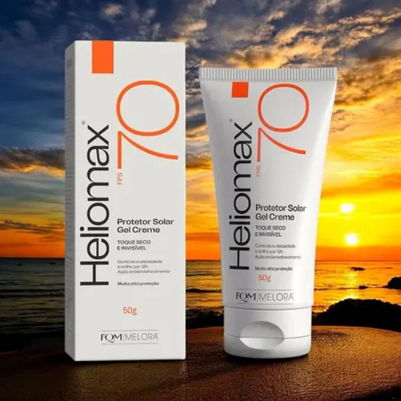 O Protetor Solar Heliomax Fps 70 é a combinação perfeita entre proteção avançada contra os raios UVA e UVB e cuidados com a estética da pele. Desenvolvido pela FQM, garante uma eficaz defesa contra os danos causados pelo sol, com opções de cor médio, médio escuro e claro para se adequar a diferentes tonalidades de pele.