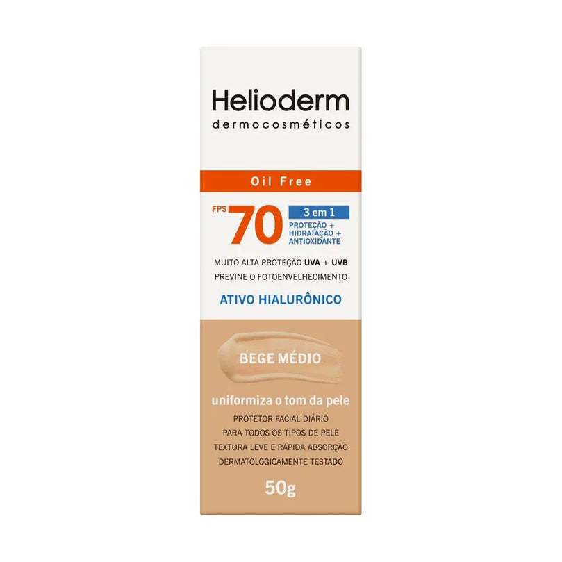 Protetor Solar Facial Hialurônico Helioderm FPS70 Bege Médio