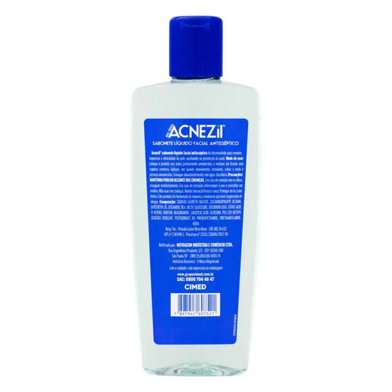 O Sabonete Líquido Facial Acnezil da marca CIMED foi desenvolvido para proporcionar uma limpeza eficaz e profunda da pele do rosto, auxiliando na prevenção da acne. Sua fórmula antisséptica remove impurezas e oleosidade, combatendo a acne desde suas origens.