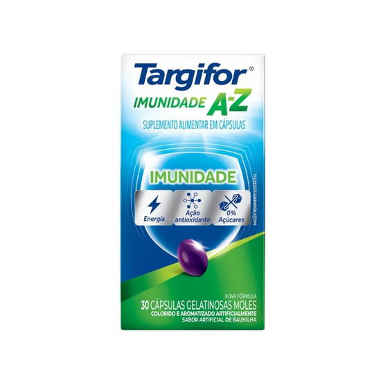 Targifor Imunidade A-Z é um suplemento alimentar em cápsulas gelatinosas, desenvolvido para auxiliar na manutenção da imunidade e do bem-estar diário. Sua fórmula contém vitaminas e minerais essenciais que contribuem para o funcionamento adequado do organismo, ajudando a repor nutrientes importantes da rotina.