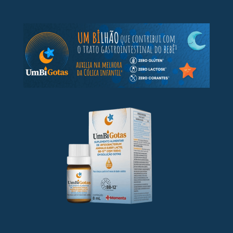 Umbi Gotas é um suplemento alimentar líquido com a cepa probiótica Bifidobacterium animalis subsp. lactis BB‑12™, desenvolvido para saúde digestiva. Indicado para suporte do equilíbrio do microbioma intestinal, ajuda a aliviar desconfortos como diarreia, constipação e cólicas — tanto em recém-nascidos e crianças quanto em adultos e idosos.