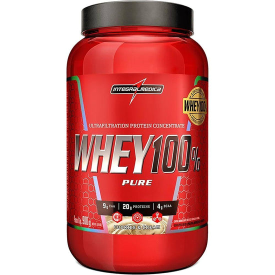 Desfrute da máxima qualidade em suplementação proteica com Whey 100% Pote Sabor Cookies 907Gr - Integral Médica.